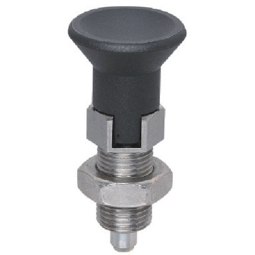 ノブの操作でノーズがストロークし、位置決めします。ノブを引いた状態で90゜回転するとノーズが引っ込んだ状態でロック(固定)できます。 |