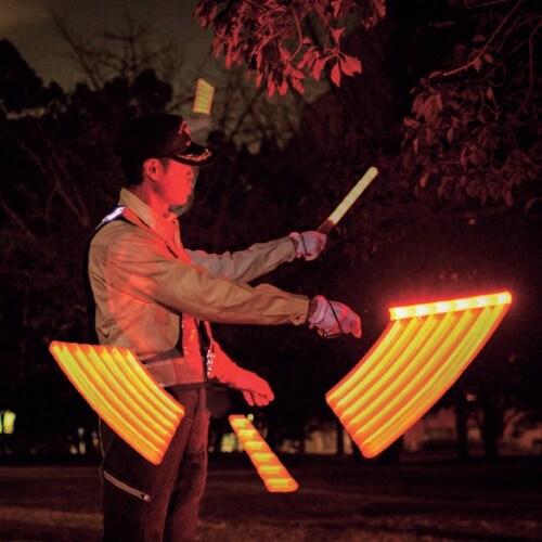 高効率、高輝度のプロフェッショナル誘導灯になります。国産マンガン電池2本使用で連続点滅100時間以上のロングライフを実現しています。 |
