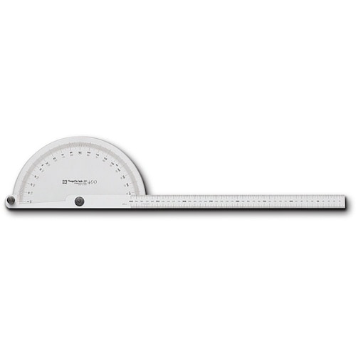 大型プロトラクタシリーズです。竿部目盛付です。No.19よりも高精度です。安心の日本製です。シルバー仕上げのため光沢が少なく目盛が見やすいです。
