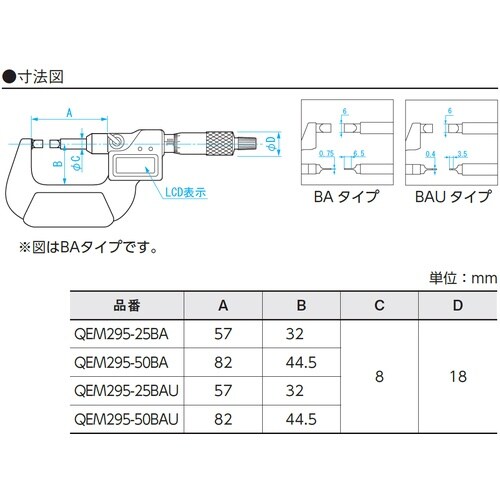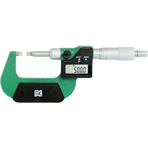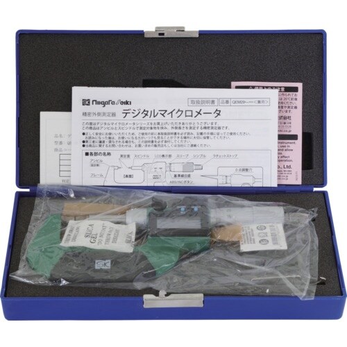 測定子がブレードタイプで、丸物の細溝径測定に最適なデジタルマイクロメーターです。精度保証のため、検査時の数値を記した検査表付です。定圧装置付です。防熱カバー付です。 |