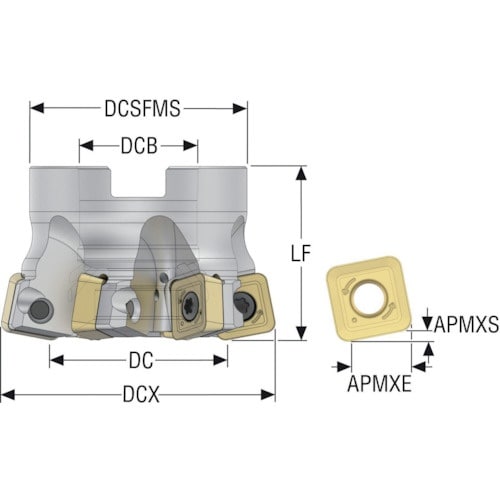 汎用用途向けのハイフィードカッタ、4コーナー切れ刃、片面インサートです。 |