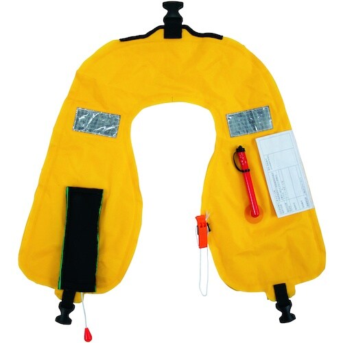 水を感知し、自動膨張する補助機能付タイプです。外側カバーを外して洗濯可能です。小型船舶用法定備品として。海上工事等の水辺での作業用に。20t以上の大型船舶上での作業用に。 |