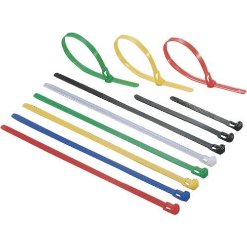 取り外しが自由にできるため、保守管理が容易で、再結束ができ経済的です。電線の結束や農業、園芸、包装など様々な分野でお使いいただけます。電気工事、配電盤などの結束に。
