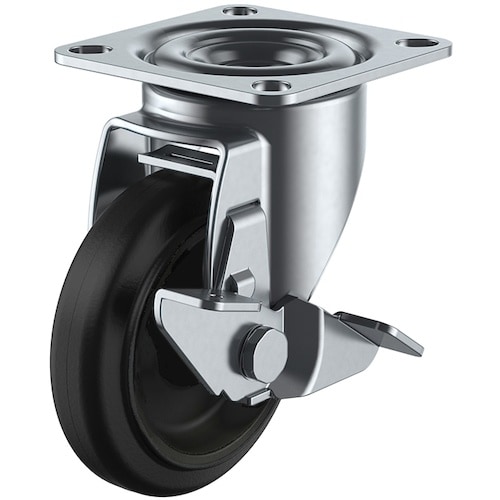 ユーエイ プレート式 自在 キャスター ゴム 車輪径100mm ストッパー付き Jタイプ RJ2−S型 取付寸法71×71(68×68)