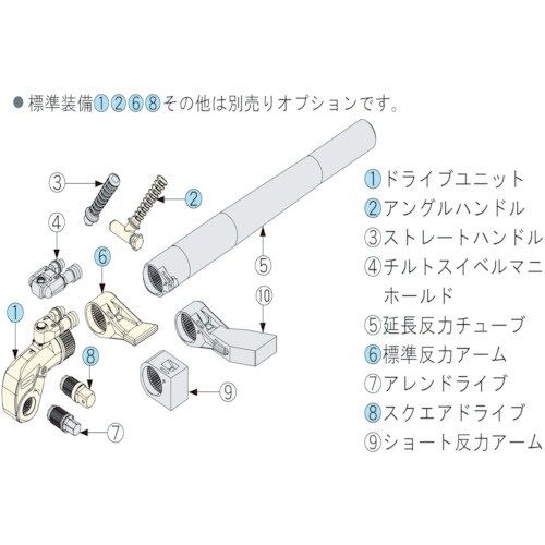 アルミ合金ボディと比較し、スチール製ボディは強靭です。反力アームは360°自由に回転ができます。インパクトや電動レンチより、締付け精度が高いです。市販品のインパクトソケットが使用可能です。 |