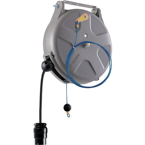 不意な巻き戻りの心配がなく、どこでも止まるロック機構です。小型・軽量で場所を取りません。吊り下げ・壁付けが可能です。首振りができます。(左右31度)着脱が簡単な取付ベース付属です。 |
