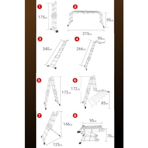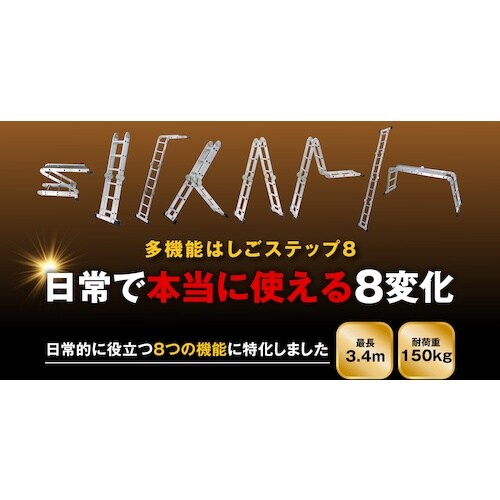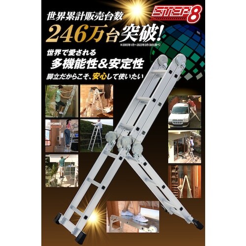 場所にあわせて8変化する便利なはしご。家中どこでも、届かなかった場所もこれ1台でお掃除や作業ができます。車の洗車、お庭の手入れ、DIYにもオススメ。はしご、脚立、作業台としてご使用ください。 |