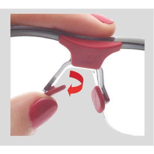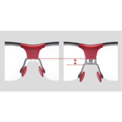 3つの調節機能で心地よいフィット感です。ノーズブリッジは3段階に高さ調節可能です。フレーム角度が調節可能です。フレームサイドに組み込まれたパーツをスライドする事で、頭部を挟む強度が調節可能です。