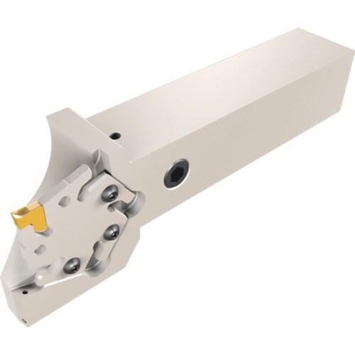 タンググリップチップが装着でき、経済的5ポケットアダプターでチップ・ポケット交換後すぐに加工再開できます。最大34MPaの高圧クーラントに対応しております。溝入れ・突っ切り加工用。
