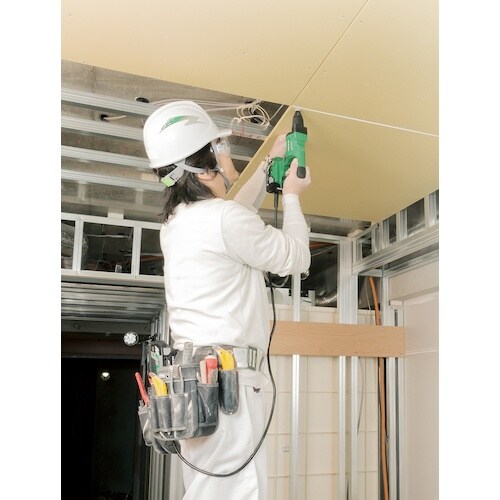 フックで腰ベルトにホルダを装着することで、機体から蓄電池の質量を軽減することができます。高所作業などに。 |