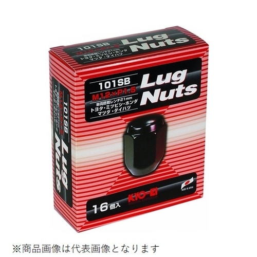 Lug Nutシリーズのホイールナット16個セット(M12×P1.5)。21mm車両搭載レンチ対応で、トヨタ・ミツビシ・ホンダ・マツダ・ダイハツに適合。 |
