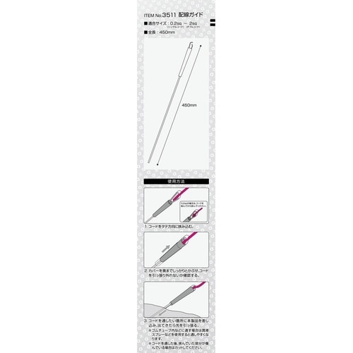 コードをグロメットやゴムブッシュ、カーペット、エンジンルームから車内へ引き込む際に最適な配線ガイド。サビにくいステンレス製で、0.2sq−2sqのコードに対応し、全長450mmです。 |