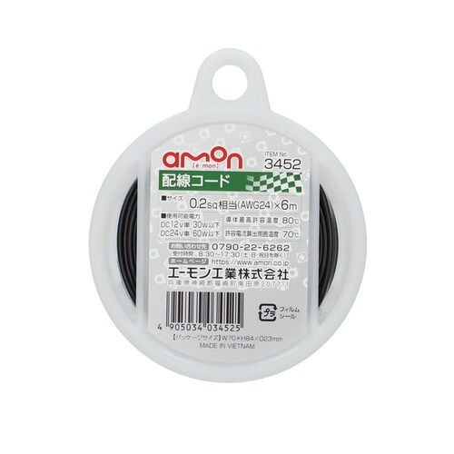 耐油性・耐候性に優れた自動車用配線コードです。0.2sqサイズで長さは6m、黒色仕様です。自動車配線の補修や延長に最適です。 |