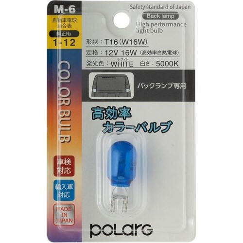 自動車用電球 高効率カラーバルブ バックランプ専用 12V16W(18W) T16 ホワイト(5000K) 1個入 P8714W ※6個以上から注文可能(販売価格は1個単位の価格)