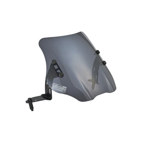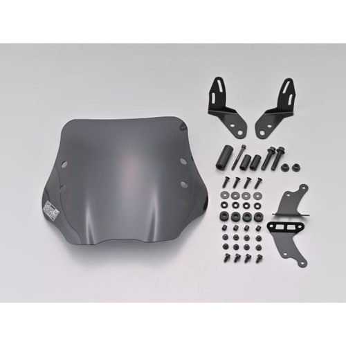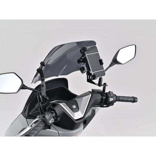 三次元立体曲面のエアロデザインで疲労軽減するウインドシールド。耐衝撃ポリカーボネート製で傷に強く、角度調整可能。クランプバー付きでスマホ装着も可能です。 |