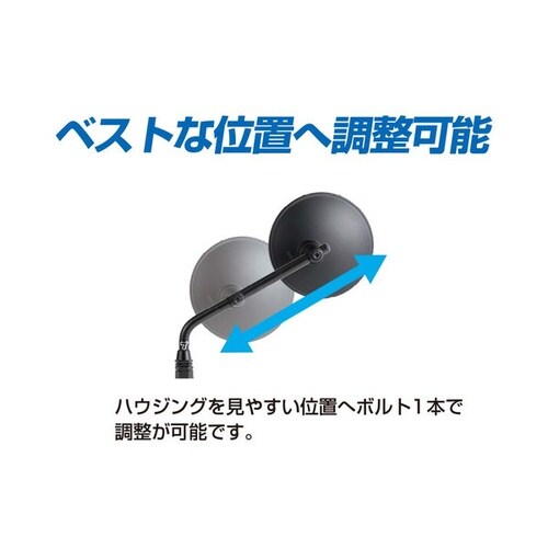 レトロバイクに合う大型クラシカルミラーで新保安基準適合。衝撃緩和FRジョイント搭載で調整可能。純正より広いR1000鏡を使用し、歪みやギラつきを抑え安全性と美しさを両立しています。 |