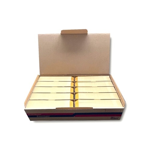 テープ付き・郵便枠入りのクラフト封筒です。サイド貼り、坪量70g。古紙パルプ配合率40%です。 |