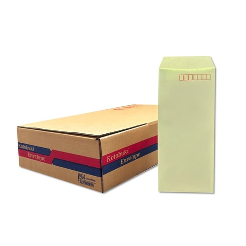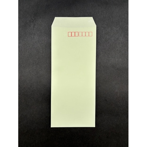 郵便枠入りのカラー封筒です。(ウグイス)裏面サイド貼り。 |