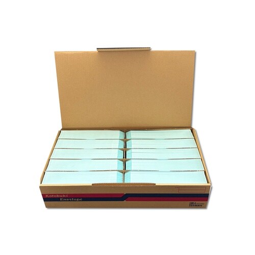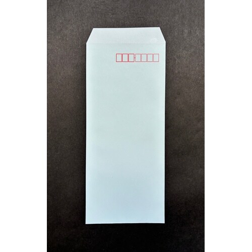 郵便枠入りのカラー封筒です。(ブルー) 裏面サイド貼り。 |