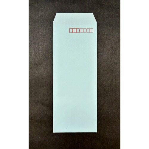 郵便枠入りのカラー封筒です。(ブルー) 裏面サイド貼り。