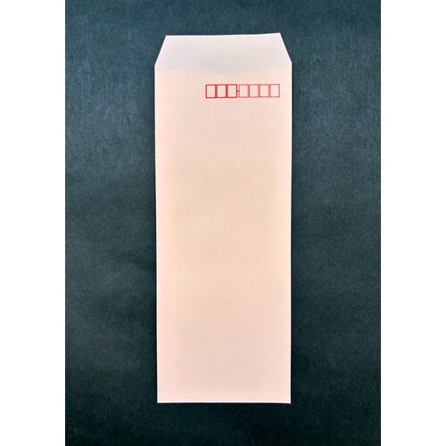 郵便枠入りのカラー封筒です。(ピンク) 裏面サイド貼り。 |