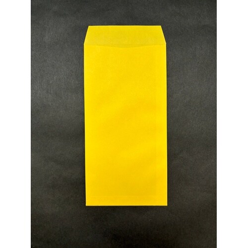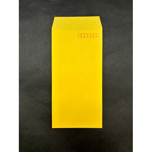 郵便枠入りの長3カラー封筒です。(イエロー) 貼り合わせがセンターにないので宛名書きがスムーズです。坪量70g。 |