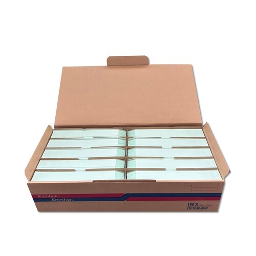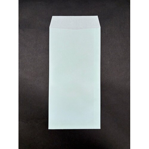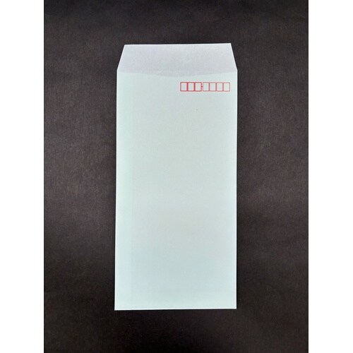 郵便枠入りの長3カラー封筒です。(水色) 貼り合わせがセンターにないので宛名書きがスムーズです。坪量70g。 |