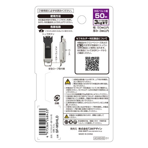 | 注意事項 | ※体重を支える金具ではありません。安全性確保のため、指定された重さ以上の工具及び、その他の製品には使用しないで下さい。製品仕様は予告なく変更する場合がございます。予めご了承ください。 |