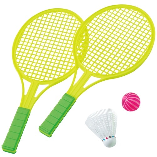 ボールでもシャトルでも楽しめる!柄が長くて打ちやすい! ラケット2本とボール・シャトルのセット! |