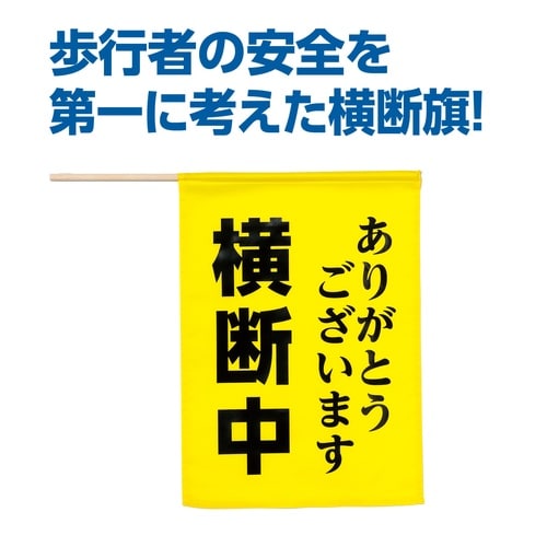 交差点や横断歩道で歩行者の安全を守るための横断旗です。「横断中ありがとうございます」のメッセージ付きで、ドライバーや周囲の人々への感謝を伝えながら、安全な横断をサポートします。 |