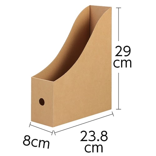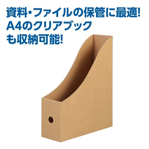 A4サイズの書類やファイルをすっきり収納できる段ボール製ファイルボックスです。クリアファイルもそのまま入れられ、日々の資料整理に便利。 |
