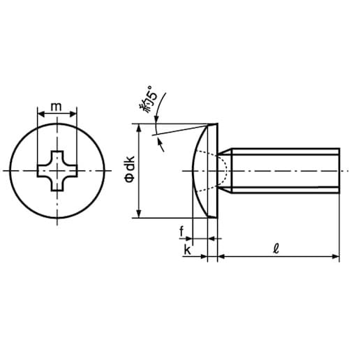 頭が台形で、上面に丸みがあり、なべ頭に比べて、頭の径が大きくなっています。 |