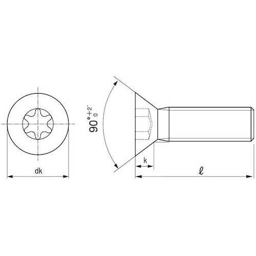 上面が平らで座面が円錐形の頭の形状です。皿小ねじは頭部も含めた全長が長さとなります。(一般的には首下部分の長さ。