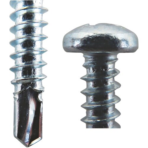 抜群の施工性、優れた締結力です。1.2ー1.6mm厚まで下穴なしで鉄板にねじ込めます。ナベ頭の特徴:なべ底形の頭部で、冷間成形性がよく、十字穴付です。ドリルねじでは最も一般的です。 |