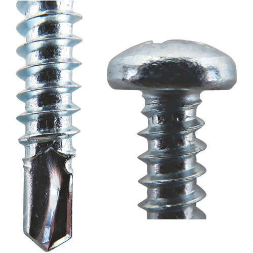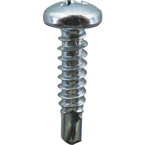 抜群の施工性、優れた締結力です。1.6ー3.2mm厚まで下穴なしで鉄板にねじ込めます。ナベ頭の特徴:なべ底形の頭部で、冷間成形性がよく、十字穴付です。ドリルねじでは最も一般的です。