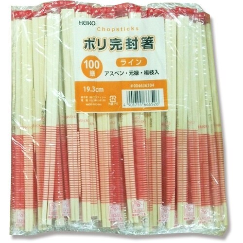 ポリ袋に入ったタイプのアスペン製元禄箸です。個包装なので衛生的です。 |