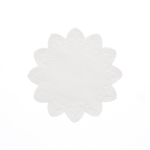 紙をレース模様に切り抜いたレースペーパーです。ケーキやお菓子、サンドイッチなどをのせたり、敷き紙として使うと手軽に高級感がアップできます。