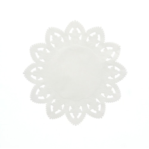 紙をレース模様に切り抜いたレースペーパーです。ケーキやお菓子、サンドイッチなどをのせたり、敷き紙として使うと手軽に高級感がアップできます。
