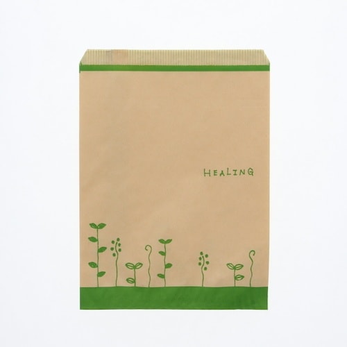 土から植物がすくすくと育つ様子をモチーフにしたデザインで再生紙を使った環境に優しい平袋です。雑貨などの小物を入れるのに適しています。200枚入り。 |