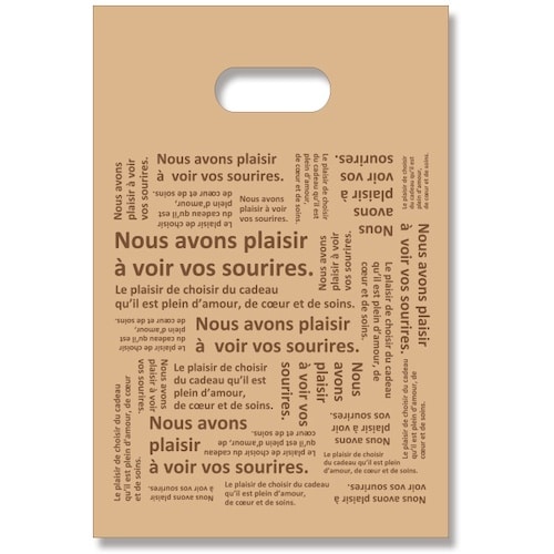 生物由来の有機資源を原料としたバイオマス成分を25%含んだ底マチ付の手抜きポリ袋です。ナチュラルでシンプルな仏語の落ち着きのあるデザイン。 |