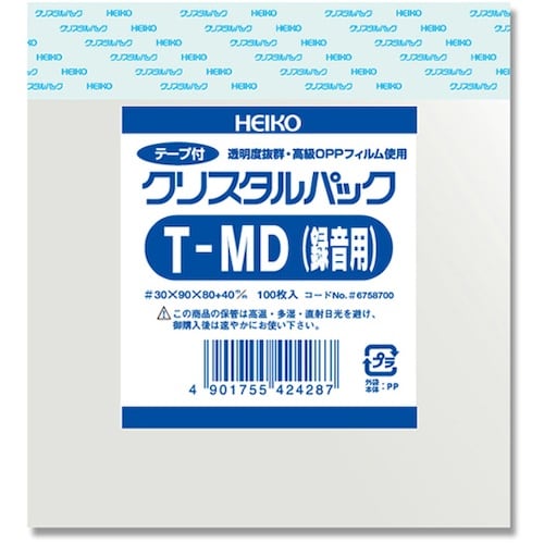 シモジマ HEIKO OPP袋 クリスタルパック テープ付 T MD(録音用) 100枚入り A00U-1327
