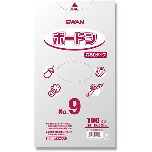 シモジマ スワン スワン ボードンパック プラマーク入り #20 No.9 穴あり 100枚入り A00U-1351