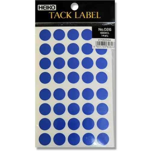 直径14mmのシンプルな青い丸いシールです。ちょっとしたアクセントや、他色と組み合わせて分類の目印などに。 |