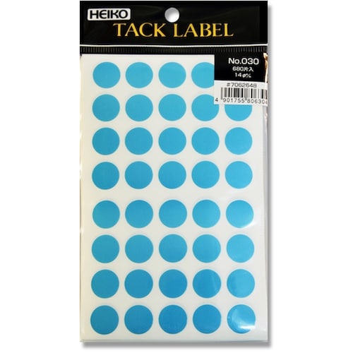 直径14mmのシンプルな水色の丸いシールです。ちょっとしたアクセントや、他色と組み合わせて分類の目印などに。 |