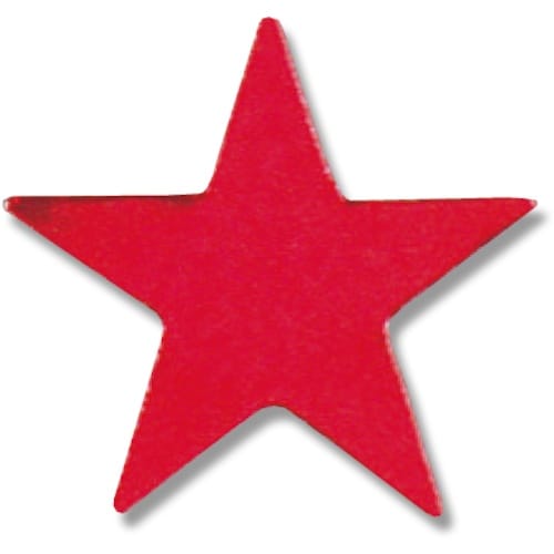 メタリックレッドの星形シールです。ちょっとしたアクセント付けや目印に。 |