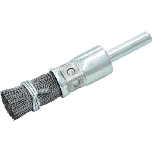取り付け交換が容易な軸付で作業性に優れ、毛先が下方を向いており、底部・コーナー部等の狭い範囲の研磨に適したブラシです。回転時に毛の広がりを抑える為の結束式です。