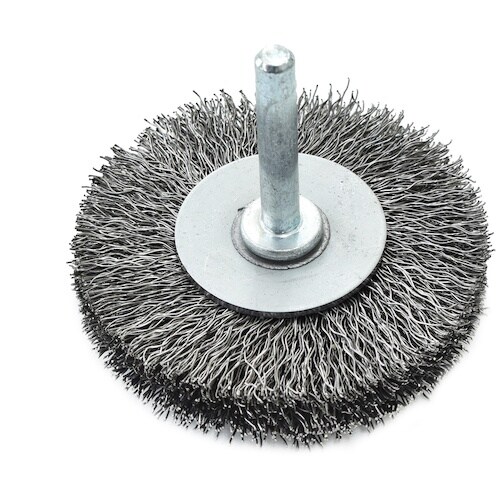取り付け交換が容易な軸付で作業性に優れ、毛先が放射状に外側に向いており、平面・外角部・出っ張り部の加工に適したブラシです。 |