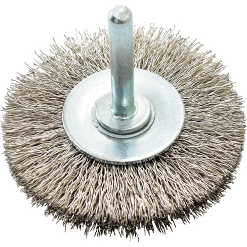 取り付け交換が容易な軸付で作業性に優れ、毛先が放射状に外側に向いており、平面・外角部・出っ張り部の加工に適したブラシです。