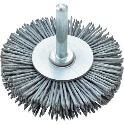 取り付け交換が容易な軸付で作業性に優れ、毛先が放射状に外側に向いており、平面・外角部・出っ張り部の加工に適したブラシです。