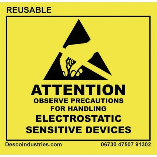 RS−471 シンボルマークは、ESD S8.1に則したESD 協会の ESD 敏感性シンボルマークと同じです。7.6cmの芯、1ロール当たり500枚です。注意喚起に。 |